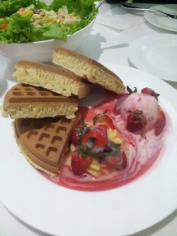 和朋友约好和下午茶的,之前逛龙之梦的时候就看到这家,被这家的松饼吸引,环境也很优雅,这次正好有团购代金券就去吃了,里面有好几种松饼感觉特别有爱,选了季节水果松和奶茶,季节水果松里面又有冰激凌还有水果,其实松饼一般般,配上冰激凌还不错,里面的水果也蛮好吃的,而且一份松饼量还是蛮多的,再加上2杯饮料就够了。查看更多