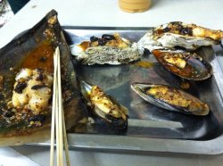 这家店子是又一次下班下了早和公司里面的小伙伴一起去吃的,我们吃了很多东西,由于鸡胗,鸡大腿,烤生蚝,金针菇等等的,鸡胗味道一,鸡大腿味道倒数蛮好吃的,就是很小的一个不大够吃,烤生蚝味道很赞的很新鲜的,烤的时候还有汁水滋滋的叫着,吃起来的味道蛮好吃生蚝满嫩的,吃起来很爽口的
