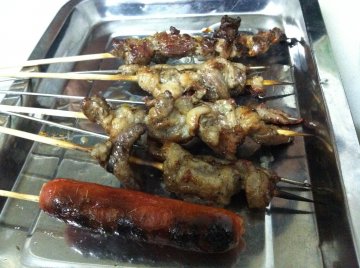 每次去文庙,总是会被烧烤的香味吸引到。我觉得西北狼烧烤绝对是属于黑暗料理的。小小的店铺,露天的烧烤,环境不太好,真的算的上是脏乱差。不过西北狼的烧烤烤的那个香呀!老远就能闻到啦!我喜欢这家的烤中翅,鸡皮烤的微焦显得金黄色的,鸡肉很嫩。骨头相连也很好吃,鸡胸软骨脆脆的,鸡肉嫩嫩的。比起DIY烧烤,还是人家专业的烤出来的好吃。我觉得20元能够在这里吃到一大堆东西了。