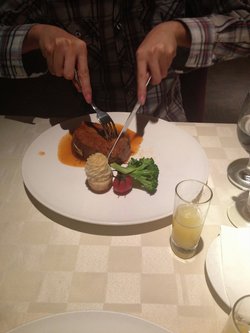 西堤牛排,比较小资的一个地方,第一次跟朋友来的时候,特别丢人,不会用刀子叉子啊,手忙脚乱,菲力牛排倒是挺好吃的,特别大的一块肉,煎的挺嫩的,里面的肉汁还在,热量比较高啊。查看更多