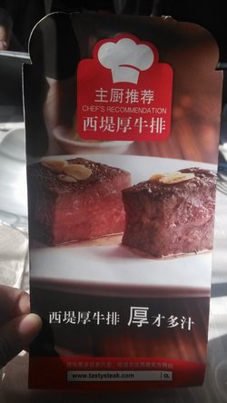 这家店就在王府井大街apm5楼,环境还不错,布置的挺华丽,而且店面很宽敞,特别适合情侣。他家的香烤厚牛排,138元一份,虽然有点小贵,但是那么厚的牛排开始我们还担心很厚不熟,但是实际一点都不用担心,肉虽然厚,但是中间也没有一点血水,外皮还不焦,切成片吃,很嫩。就是搭配的薯泥有点少。查看更多