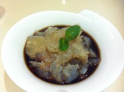 竹蔗茅根马蹄露+1个鲜冻牛油菠萝包)天冷死咯,喝的热的马蹄露,味道也很不错,据说冷的更好喝。真的很久没吃到又酥又香的菠萝包了,轻轻拿起来,酥皮都掉了好多有种舔干净的冲动。。。无论是单吃,还是把牛油夹进面包里吃,都很好很好吃,非常推荐,以后可以试试别的美味果醋西柚海蜇头.海蜇头很爽脆,底下铺的柚子,果醋酸甜把2者融合的还不赖.四喜素宝烤麸.卤味很重,非常入味,不过吃太多会有点齁。分子芒果蛋,小小一只蛋里装的不是蛋黄,是芒果沙之类的,口味很独特.烧味八喜拼.这道非常爱,烧鸡、烧鸭、叉烧等,最爱烧鸭和叉烧,配那个甜酱油真赞.玫瑰烟熏蜜汁酥鱼.鱼很酥,也和甜,烟熏味很重。啫啫沙姜鸡,鸡肉好嫩,只吃1块,就没拉,可见大家多爱.酸汤肥牛花甲,这道也非常爱,酸的味道刚刚好,肥牛分量很足够,底下配的莴笋,好吃的不得了,全部吃光光.蟹籽虾仁滑蛋白.蛋白虾仁的色调太美丽了,挖一勺吃,好舒服的感觉,味道可以再浓点就好了.豉汁蒸凤爪.可能蒸的时间太长了,很烂,没有嚼劲.太妃流沙包.里面是鸭蛋黄加砂糖,咸甜配合在一起,滋味回味无穷.手工制作榴莲雪糕做的时候很有趣,吃的时候嘴巴喷烟的感觉好好玩。虽然榴莲口味,但是不爱吃的人也不会觉得过重查看更多