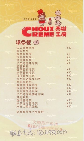 他家和贝儿多是我最喜欢的2家泡芙连锁店,这家店开在市中心,交通便利,我喜欢他家的香草泡芙,口感醇厚,还有一种是抹茶口味,颜色有点浓郁,口感比较清爽的。价格不贵,基本是在10元左右