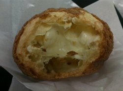 和同伴一人买了个泡芙,我买的香草口味的,同伴买的是榴莲味,彼此分享着吃,他们家泡芙的外皮口感挺脆的,里面的内陷放的也很足量,陷料有点冰冰的,香草口味的内陷甜而不腻,榴莲味的陷料榴莲的香味还是挺香浓的,而且入口的感觉也很柔和,就和冰淇淋一样,不会有腻口的感觉,而且两种味道我觉得各有特色。查看更多