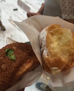 买的时候刚好饭店,地下一层还是很热闹的哈,我去的时候没什么人买,结果很快就买好了,然后谁知道服务员给我的泡芙已经冷掉了,外皮也变得有点软软的,不是很脆,就奶油还是凉凉的口感,算是不错吧,下次买要看好是不是刚做好的。查看更多