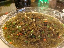 环境不错,主打将西菜肴。价格微贵,一份脱骨凤爪68,味道不错,汤汁浓稠,酱香浓郁,底下铺满红薯,吸收了凤爪的汤汁味道很不错。手撕包菜18一份,量还算大,但是很下饭,汤汁是酸甜口的。有自助水果,包括西瓜,伊丽莎白,橙子,但是这里苍蝇好多,水果上也有死苍蝇,比较倒胃口,空调不给力,吃完出了好多汗。