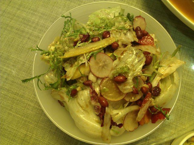 西贝大拌菜,清新爽口! OceanDola等級42012-11-14125 瀏覽 關注 立冬巧逢同事请吃饭,大家决定去补一补!立冬羊肉补一补,胜过寒天烤火炉7点钟到店的,人不多,预先定了位,10个人坐包房,无最低消费限制!进门,服务员颇热情,直接给领到房,上茶上餐牌!这餐牌真是赏心悦目啊,全是肉,看着就舒服!(忘记拍照了)同事说随便点,哈哈~~~那就不用顾忌了,随便点~~~西贝的红牌~~~大拌菜~~~超爱!全是西式的沙拉菜,还有樱桃萝卜!酱汁很清新,生菜很爽口,开胃,吃着真舒服!凉菜~~~酱牛肉上菜我们都以为看错了,为什么是干的啊可人家说就是这样的干身的,确实是酱牛肉的味道,只是没有酱!牛肉本身不会韧,刚好,带点小嚼劲,觉得不太够味,偏淡!算是比较特别吧!凉菜~~~凉拌木耳只有木耳的味道,醋很少,带很轻的芥末的味道,木耳不够脆口!面汤~~~好像是叫羊肉罐面,忘记了羊肉味很浓啊,膻味十足,还不错!炖菜~~番茄炖牛肉真心坑爹啊!看菜牌以为很大一份,58元啊,上来才那么一点,每人还分不上一块肉啊!不过味道还算可以,没什么惊喜,牛肉炖得很熟烂,酸甜!炖菜~~~西贝炖鱼这家店鱼只有这么一味儿!鲤鱼,用来炖,广东妹子真心吃不习惯!没有放姜,连胡椒粉都没有,就单纯用酱炖,土味很重,鱼肉很烂,刺很多,吃不出新鲜与否。9个人都只尝了一小口就放弃了!不过,遇到一奇葩,只要水里游的上桌都不剩!事实,给他一人吃得只剩骨头!各种佩服!炖菜~~~羊蝎子羊蝎子,就是羊腰骨!相当于猪的龙尾骨!我又长见识了!炖得很入味,羊的味也没丢失,肉不多,味道不错!特色菜~~~香菇莜面鱼鱼名字很吸引人~~各种新鲜感~~~汤很好喝,一点点酸味,浓汤,感觉颇特别!鱼鱼就是一种面食,形状和口感都很像广式早茶里的水晶粉,但不是透明的,像是用荞麦做的,很Q,跟汤一起喝,真不错!推荐!还有羊肉味的,不过我想羊肉的肯定会没那么好吃,因为羊膻味重会掩盖一切的!烤肉~~~精品烤羊排 238元/份服务员现场用烤盘烤好端上来,看着很有食欲,很壮观啊!每一根都是精挑细选的羊排骨,羊肉烤得吱吱响啊,香味儿四溢,就简单的配上洋葱就足够啦!孜然粉另外配上,洋葱吸收了羊油,膻的够呛,只能吃羊排~~~烤得刚刚好,肉汁饱满,香嫩,就是才9根,肉有点少!还想再来一盘~~~赞赞赞赞赞~~~~~~~还叫了两打羊肉串儿,孜然粉很香,肉嫩啊,够肥美啊,带点小辣,吃得很爽(忘记拍照)主食~~~杂粮框、肉夹馍杂粮框就是各种西北面试小份放一块,最爱窝窝头,不过这里的窝窝头不够地道!有一个饼硬得可以砸死人~~哈哈~~~肉夹馍比较失望,只有猪肉馅的~~~不过馅很多,皮烤得比较干脆,馅都填满了整个饼,真是足料,就是没有酱汁太干了!甜点~~~酸奶不过酸,偏甜,也不够浓厚,不够稠!记得有一次吃的酸奶都有布丁的口感了,这个就用来吸就好了,个人觉得发酵不足,应该还可以再浓郁一点!10个人,一大桌,都是肉,太满足啦,各个捧着肚子出门!(服务员还提示说我们没有点热的蔬菜,被我们直接拒绝了,一群肉食动物啊)价钱个人觉得比较公道啦,同事埋单875,忘记给他优惠券了(优惠券可以每满100减10元,桌上都有提示)这里环境很不错,有点西北小风情,服务员李小妹子很能侃很热情,一口北方口音,挺有意思的,肯定还会再来的!…查看更多+ 8以上食評乃用戶個人意見 , 並不代表OpenRice之觀點。讚好分享西贝大拌菜,清新爽口! 西貝蓧面村 https://s.openrice.com/KtbT0W0DO4300檢舉 恰同学少年 立冬羊肉补一补,胜过寒天烤火炉2012-11-27 回覆 OceanDola 不一定要立冬啦,冬天都是进补的好日子啊。2012-12-05 張貼 評分4味道4環境4服務4衛生3抵食推介美食罐面羊蝎子¥68大拌菜¥18番茄炖牛肉¥58酱羊肉¥58香菇莜面鱼鱼满满一桌精品烤羊排¥238杂粮框 肉夹馍¥78精品烤羊排、香菇莜面鱼鱼、西贝大拌菜、杂粮框、烤羊肉串、羊蝎子用餐日期2012-11-07人均消費¥80 (晚餐)