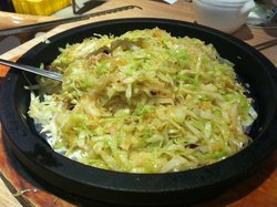 以前都吃羊棒骨,这次点了羊排,没有羊棒骨好吃。排场很大,有个加热炉,上面放了生的洋葱圈,然后放了羊排(应该是熟的),等热了就可以吃了,洋葱圈很难熟,不好吃。羊排肉质不错,稍稍腌过,但是上面有肥肉,过肥,骨头很大块,有两种调味粉,孜然和还有一种不清楚的,自己撒。