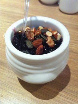 西贝好久没吃了,现在好像改名叫莜面村了。跟着舌尖2的进度,这里又推出了空心面。红格子餐布很有乡村风,而且也有了小沙漏,如果25分钟还没上齐菜品可以送2罐自制酸奶。空心面(酸汤)的,15米,里面番茄味道很浓,也很入味,重要的是面很Q。牛肉泡馍,馍馍不少,肉肉也不少,略有点咖喱味道。烧羊棒,7.9元/1两,一根棒棒差不多3-4两,肉烧得很香,但不干,膻味不重。自制的酸奶是大爱,每个桌子上都有蜂蜜配,如果单吃酸奶会比较酸,配了蜂蜜就刚刚好!每次来都要点一份哒!