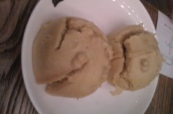菜单上面有很大一页,写着“舌尖上的美味——黄馍馍”,3元一个,非常的大个。黄馍馍的外皮有股粗粮的香味,非常的松软,入口非常的绵软,里面的红豆内馅非常的好吃,不是那种很细、很甜的豆沙,而是那种比较粗糙的红豆沙,还可以吃到比较大的颗粒,没有放过任何糖。查看更多