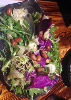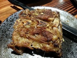 这家店开的时间不短了,一直碎碎念了好久,终于来拔草了。看地图的时候,以为店在胡同里,还担心这家店不好找,实际上蓝旗营公交站下车就能看到,就在马路边儿上。看菜单,亮点应该是果木碳烤,招牌菜里有很多种没见过的特色烧烤,比如烤羊血肠,烤整只土豆。既然是居酒屋当然也不能少了酒啦~吧台的墙上摆放着好多漂亮的酒瓶,清酒,果酒,烧酒,种类真不少,不过我还是喜欢夏天和哥们儿一边撸串儿,一边喝啤酒。餐具都有点儿日式风格,以黑色为主色调。餐桌上还贴着发朋友圈送觅辣鸡翅的活动,好像自打开业就有这个活动了。反正店里有wifi,也不费事儿,优惠能蹭点儿是点儿。先上的是凉菜,新鲜蔬菜沙拉:本来想点大拌菜的,服务员说蔬菜沙拉是他家的特色,就点了这个。苦菊和生菜比较多,点缀了一些圣女果、藕片、紫甘蓝。配了一碗沙拉汁,味道偏酸,应该是以白醋过果醋为主,比大拌菜更清爽一些。饮料要的都是热的,冬天喝着暖和,握着也暖和,尤其是奶茶,比酸梅汤温度更热一些,虽然不是优乐美,但是依旧可以捧在手心里。锡纸烤金针菇出乎意料的好吃,嫩嫩的,没有咬不动的根,鲜美的不得了,简直抢了肉串的风头。烤羊蝎子,超大块,好啃,不塞牙,骨髓轻松一吸就出来,而且和骨头丝毫不粘连,大爱( ̄∇ ̄)扇贝:常见的蒜蓉做法,肉质饱满,没有沙袋,只要鲜美,拒绝牙碜要是配少许粉丝就更好了。烤鳕鱼,朋友强烈推荐的,确实不错,厚实的带皮带骨的大块鳕鱼,配了一瓣鲜柠檬。鳕鱼更像是炸的,表皮酥脆,肉嫩多汁,挤上柠檬汁多了一分清爽。羊肚:注意是手撕的哦,喜欢吃毛肚的人应该都知道,只有新鲜的毛肚才能用手撕,第一次吃烤毛肚,保留了脆嫩的口感,烤的刚刚好,不错。鸡翅:有三种味道,奥尔良,芥辣, 香辣,不管是哪种味道都不错。芥辣和香辣并没有想像中的那么刺激,有点甜甜的,女生都会喜欢哒~鸡胗的块比较大,嫩又不失咬劲儿,有些地方图省事儿,不撕掉那层筋膜,嚼到腮帮子疼也叫不烂啊鸡软骨:我还以为是鸡胸的那个三角型的软骨呢,端上来发现是掌中宝,味道也不错比软骨多了些筋,更有嚼头儿。酒足饭饱之后,来一碗热乎乎的疙瘩汤,溜溜缝儿,那叫一个舒坦~疙瘩颗粒比较小,也均匀,口感不错。临走前,去了趟洗手间,然后就看到了如此“温馨”的提醒…………容我乐一会儿~~查看更多