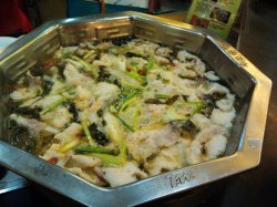 谭氏火锅就在虹口龙之梦的对面交通很方便,我家过去也就一部车生意挺好的,我们去的早不用等位外面等位的,可以上网玩,有电脑有送免费的汽水,还有送餐前小菜一个是花生,一个萝卜什么的点了特色的酸菜鱼火锅再点了点涮菜和飞饼酸菜鱼火锅上来后,发觉鱼片好多呀烧的也很入味,不沾调料也没问题他们调料是自助的6元1个人调料除了调味,还可以降低食物的温度直接吃的确是有点烫舌头特别是我这种,不高兴放稍微冷点又懒得蘸酱的人,经常这么吃不太好他们的鱼不是鲶鱼,所以有那么点刺如果是鲶鱼我更加爱了油豆腐号称是他们家特色呈螺旋状,吃起来QQ的飞饼外脆内韧味道也很好吃点的是火腿的查看更多