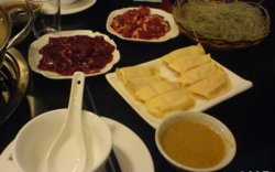 自助的调料4块,几年下来都是这个价格,没有涨过,喜欢沙茶+花生酱+沙爹+芝麻+香菜的组合,还是自助的比较适合我饮料他家是可乐雪碧每人1瓶,豆浆畅饮,凭点评卡免费送了一扎酸梅汁,味道挺足的,没有多掺水,表扬一记~酸菜鱼锅底39块,鱼片很多,口感满滑的,如果两个人的话绝对吃不完,建议4个人同行比较理想羔羊卷原价28,送的量满足的,羊肉质量上乘,久涮也不觉得老,吃起来很鲜美点了一斤的鱼头,分纯鱼头和带肉的鱼头两种,用料腌过的,要了有肉的那种26块/斤,啃啃还是满过瘾的鉴于锅底的量实在是大,另外只点了金针菇12,白菜6,冻豆腐6,他家菜量普遍不少,价格也很实惠,东西还满新鲜的印度飞饼15块,如果有学生证的话免费赠送,而且口味是任选的,要了火腿的,里面馅料不少,外皮酥脆,一份大概有十几二十块,实在没战斗力了打包带走服务其实蛮一般的,但是最后买单时的MM态度超好的,还问需不需要打包,有哪些地方还需改进之类的,最后人均连30都不到……这家店还会再去的,下次要多叫点人了,不然光一个锅底就搞不定,看到锅底里有三色排骨锅,分别是咖喱、红汤和白汤的,过两天再来拜访查看更多