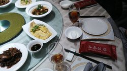 在谷泰饭店包房,聚了一下餐,比较传统点的老店,本帮的口味。冷菜里头的三黄鸡,蛮受大家好评的,原汁原味的做法,鸡肉挺鲜嫩的。肚丝,厚厚的,吃起来很有弹性,蘸点酱油,调调味,灵哦。糟香黄鱼,淡淡的糟卤味,鱼肉挺嫩哦。黄瓜海蜇,很清爽的一道菜,脆脆的。卤水拼盘,有卤蛋、鸭肫、鹅翼,他们家卤水做得普普通通啦。热菜有,清炒虾仁,量蛮足的,虾仁比较弹牙。红烧肉,看着油光噌亮哦,肉烧得酥而不烂,很入味。砂锅伊面焗海鲜,里面有不少蛤蜊、虾和蛏子,伊面煮得香软入味,有了海鲜,味道很鲜美的说。粉丝蒸扇贝,扇贝新鲜的,粉丝吸收了扇贝的鲜味,很好吃。点心要了木瓜酥,酥皮很香,内馅儿做得很细,推荐。他们家量比较大,价格比较适中。…查看更多
