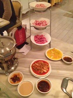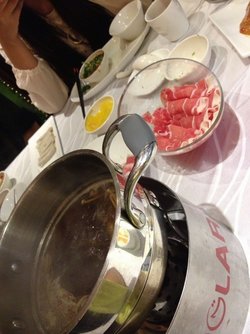 现在上海这样的小锅火锅是越来越多啊,这样的火锅有个好处,每个人自己吃自己的,喜欢吃辣可以点辣的底,喜欢清淡的可以点清淡的锅子,我比较喜欢吃他们家的骨头锅,浓郁而且清淡的骨头锅底可以很好的凸现出涮品的美味,他们家牛肉不错,切的很薄,涮一下就熟了,很嫩,味道很不错查看更多
