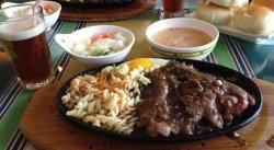 吃牛排的地方,还有一些中式的小点心,价格比较便宜,但一分价钱一分货吧。个人不是特别喜欢,套餐里面也就牛排还可以,自己可以选择几分熟的,满嫩的,但是配菜真的不咋地,汤感觉就是超市里速溶的那种,真心不喜欢,倒是一些小点心还不错。查看更多