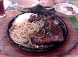 豪享来的装修比较简单,但是他家的套餐我还蛮喜欢的,人均在四十左右,吃下来感觉蛮物超所值的。他家的服务员都是穿绿色的背心裤子搭白衬衫的,绿黄白三种颜色的格子桌布配棕色的木凳子比较清爽一些。买了份黑胡椒牛排套餐,我一直比较钟爱的,要的七分熟的,牛排个头比较大,而且肉质很嫩,黑胡椒的味道就是非常浓郁吖,旁边搭配了番茄酱口味的螺丝面,还有个荷包蛋,螺丝面味道有点类似于泡面,酸酸的蛮入味的,荷包蛋是半熟的,个人感觉全熟的比较健康一点,但是从外观来说,肯定半熟的更漂亮咯…查看更多