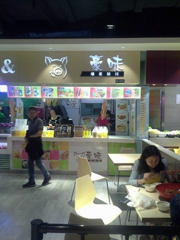 开在日月光的地下二层,门口有MM在招呼试吃,尝了下味道还不错,就去买了块猪排。店面挺小的,除了猪排以外,还有卖饮料什么的。买单送了本台历,等了5分钟左右拿到了猪排,选了原味的。是帮你切好的,吃起来比较方便,味道也是适中,有点汁水的,不错。