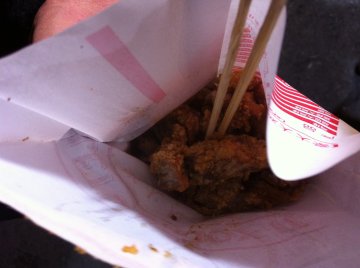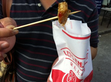 去文庙逛街,看见他们的大鸡排买了一块吃吃。鸡排很大一块的,好像是提前腌制好的,外皮包裹着好像什么面粉,在油里炸,炸了一会他把鸡排拿了出来,剪了几下,在放进去继续炸,过了一会就好了,给我们切成小块,上面在撒上甜辣酱,味道蛮吃的,很香的。…查看更多