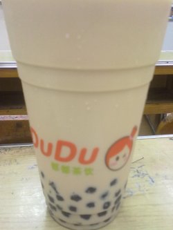 他家的鸡排我已经吃烟掉了,因为肉质太老了,肌肉的口感不怎么样,于是有天经过那里买了一杯他家的珍珠奶茶喝喝.他家的奶茶6块钱一杯,价格上也没啥优势.用奶精冲出来的,里面貌似没放茶叶.奶茶就是奶精味,比较甜,里面的珍珠很硬的,没啥弹性,口感太差了,珍珠全扔了,不敢吃.