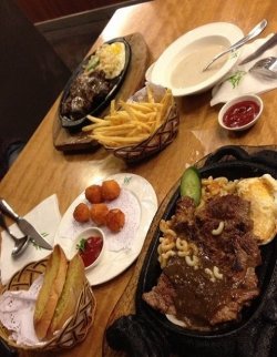 团购的券...请朋友和他女朋友来的...呵呵~ABCD套餐各来了一份...还行,个人觉得蒜香的面包还行,比牛肉烧多士好吃~!沙朗牛排和新沙朗牛排味道都不错!火焰牛排就差点了...估计卖点就是火焰了...而非牛扒本身上...饮料冰红茶不错!玉米浓汤没有奶油蘑菇汤好...不过还是最喜欢必胜客的奶油蘑菇汤啊...哇咔咔查看更多