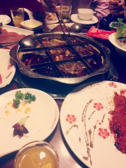 弟弟加拿大回来的时候特别说了想吃麻辣火锅,所以BF特别挑了这个地方来,环境布置的非常有中国特色因为照顾我所以点了一个鸳鸯锅不过说实话这里的麻辣锅非常的赞,虽然辣但是味道很香,他们家的牛筋也不错,非常的粗所以不会担心下锅后融化掉,配上自己特质的酱料香辣中带一点麻即开胃又饱足了嘴瘾。查看更多