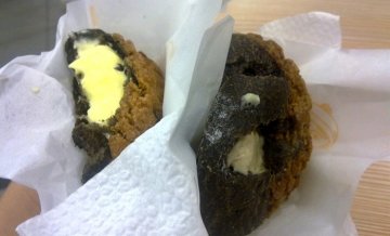 都是甜食~算了还是吃吃看吧。抛开甜味不说,这里的泡芙还是真的不错的哦。种类也很多,点了一个香草奶油泡芙,巧克力夹心泡芙。个人更加喜欢巧克力的,因为这里的巧克力的不是很甜,反而是甜和苦味中和掉了,香草的太甜了。…查看更多