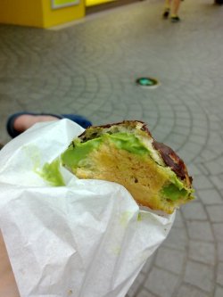 上礼拜刚团的泡芙,正好经过五番街就顺便领掉算了,结果他家门口是大排长龙啊,起码有20来人。。。五个一盒的泡芙28.8,还蛮合算的说~有香草黑曲奇泡芙2个+限时口味泡芙2个+限时口味脆皮泡芙1个1-10日限定口味是抹茶,抹茶味还蛮浓郁的,甜度很低,我爱的呀~8过老妈还是喜欢香草黑曲奇泡芙厚厚~查看更多