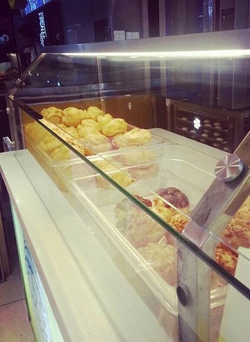 这家店就在东方新天地地下一层,我们都很爱吃这口,所以来这里逛街必买的。我比较爱吃巧克力脆皮泡芙,10元一个,很喜欢吃上面那层巧克力酥皮,烤的焦焦的,非常好吃,那个味道就跟菠萝包上的那层糖皮似的,他家注的奶油也挺多的,可吃起来却一点不腻。
