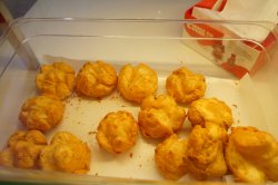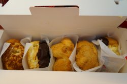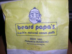 在拉手网上团购的39元五个泡芙,口味有三种,抹茶的,巧克力的和香草的,老公去西单这家店买回来的,味道真是太香了,一个手提的纸盒里装着,每只还有个小纸袋,打开一看我吃了一惊,没见过这么大的泡芙啊,真是和馒头大小呢,吃了一个巧克力的,奶油装得真满,外面的表是脆的很薄呢,里面全是巧克力的馅,真是好吃,老公说在那是亲自灌装的奶油呢查看更多