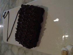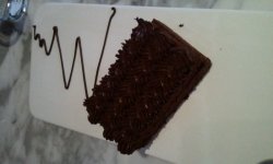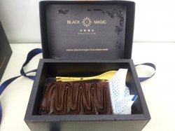 这里的巧克力一直久仰大名,终于有机会来吃看看了。店里面小小的才几张桌子。还有一部分是露天的。店里面统一的黑色格调,跟巧克力挺配的。巧克力小小的一块,价格不菲。看说明是进口的巧克力做的蛋糕,感觉会很好吃。买了一块先尝尝味道。看到这里的打包盒很好看,就打包带走了再吃的。巧克力味很浓,做成泥浆一样,造型很好看。刚吃的时候还觉得好吃的,吃到后面就会觉得有点太甜太腻太厚实了。一块的话还是分着吃比较好。…查看更多