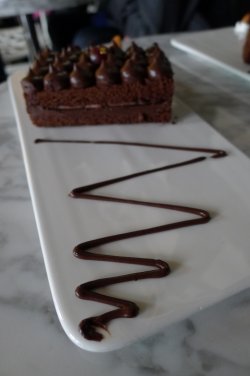 这里的巧克力蛋糕真的很好吃,58%的生巧克力,很醇厚的巧克力味道,稍微有点偏甜,配上免费的红茶,否则有点腻。味道很正。比较容易发胖的食物,不敢多吃。服务挺热情,装修比较优雅,以巧克力色为主小有情调的一家餐厅。价格有点偏贵。查看更多