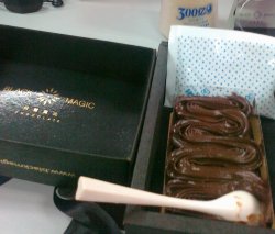 在网上团购的。团购价格98元,原价是198元的蛋糕还有3张优惠券。 在日月光的美食广场里。绕了一大圈才找到的。里面的环境不错。他们用IPAD来展示他们家的蛋糕的。感觉很有品德。 那里没有操作间的。所以要自提前,都是要预定的。服务小姐很NICE,说话很客气,柔声细语的。会介绍他们的产品。包装的盒子很漂亮。里面的小勺子和小叉子也挺KAWAII得。蛋糕是很厚重的巧克力蛋糕。感觉和我们平时吃的德芙黑巧克力有点像。纯度很高。反正我觉得这次团购还是很值得的。查看更多