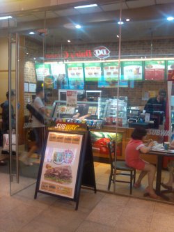 小镇上能吃饭的餐厅可选性真是少之又少啊,无奈之下只能随便对付一口的节奏了。所有产品都不售卖单品,只能买套餐,这样的硬性规定真的好么。店面不算大,但禁不住人多啊,尤其靠门的位置真心冷啊,各种出去进来的都不关门,吃着饭身边各种等位的,眼睁睁的看着你的,把买完的餐放在你桌子上的,有点大学食堂的节奏了,感觉管理有点混乱,这样的用餐环境不太舒服。双拼套餐,48米的价格也是醉了。双拼饭和市区的明显口味不一样是几个意思,牛肉基本上没有调味,最招牌的饭味道都如此一般,别的就不用多说了吧。摇滚沙拉,玉米、紫甘蓝、生菜、胡萝卜、圣女果配一包千岛酱,自己动手摇一摇倒是很有新意。葡萄汁,我能说这货太甜了么,齁儿着了都。咖喱鸡排饭套餐,38米。价格低一些,不过味道么也是可以想象了。用平盘子装感觉冷的更快,咖喱吃到最后有点腻,如果增加辣度估计会好一点吧,同样配了菜花、西蓝湖和胡萝卜,米饭的量感觉更大一点。排骨玉米汤还不错,味道很浓郁,主要天凉喝点热汤感觉胃里暖和多了。俩人随便吃点就100米的节奏,看来真是寸土寸金啊,话说这种连锁餐饮店根据店面位置不同,定价不等是正常的咩。购物扫货解决午餐的好去处,不过那些推着婴儿扶着老人的小伙伴们,建议还是不要赶在人多时来就餐了。…查看更多