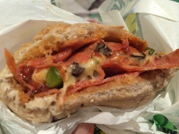 服务生因为小伙伴忘记之前爱吃的那款的名字和常选的面包,帮忙推荐和回忆了下,服务态度不错,赞一个。冒选了新出的意大利香肠口味,萨拉米香肠配辣椒酱、青辣椒丝、黄瓜片、黑橄榄和芝士片,加热后很薄的一份,但味道还是很美丽滴,最爱全麦面包的香气了。小伙伴选了蜂蜜燕麦面包配意大利香肠,蛋黄酱和烧烤酱绝对是真爱的搭配,香味炒鸡浓郁的说。随便吃吃还不错的一家店,面包和配菜可自选。