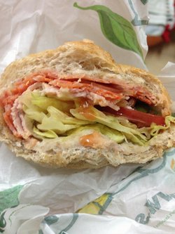 这家赛百味在东长安街1号东方新天地地下一层,店面跟其它的赛百味比算是比较大的了,有桌子可以在里面吃,也可以外带。我来的时候是用的招商银行九积分加九块钱可以换一个6寸的22块钱以下的三明治。要了个意大利经典三明治,面包要的全麦的,服务员会问你要不要加热,里面的蔬菜什么的种类还挺多的,可以自己选,酱的种类也有个六七种,我要的还是典型的番茄酱,一个三明治很大,女生可以吃的饱饱的~查看更多