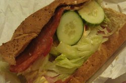 这家赛百味的地址是西单北大街176号汉光百货(原中友百货)B1楼,这次买的是照烧鸡肉三明治,照烧鸡肉的味道很像是新奥尔良烤鸡肉,里面的菜品种蛮多的,有酸黄瓜还有西红柿生菜另外还有黄瓜,酱料也有很多可以选择。查看更多