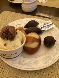 比较传统的五星级酒店自助餐,菜品算是中庸,没有特别的高大上的菜品。午市去的,没有三文鱼,没佛跳墙。印象比较深的就是留下烤牛排,因为靠近骨头的地方,牛肉还很嫩。到是冰淇淋味道不错,不是很甜那种,但不知道午市关系,可以选择的品种太少了。服务员都是上海,比较亲切。…查看更多