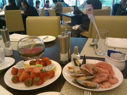 高级地段高级餐厅哦,吃了自助餐,一大家子近10人去的,没有给我们大的桌子哦,分开做了,这个不是很好的,刺身,大虾,北极贝,烤肉,甜品,什么的都蛮全的,自助餐么也就这点花样了。吃的人很多,服务有点跟不上,看到大堂经理直接拿了瓶装的可乐在帮客人倒可乐,不是应该分装到专门的容器才能给客人倒的吗?晕。吃的么味道都还不错的,水果的品种特多。查看更多