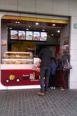 超级鸡车嘛 价格比豪大大超微贵一点点 但是难吃一点点。。。品种的蛮多的 一个一个都摆在橱窗里。。。听说鸡皮蛮好吃的。。。下次会去试试。。。一般喜欢点脆皮大鸡排。。。还有红薯条。。。红薯条其实一般 但是每次还是会点。。。鸡排都有一根骨头。。。诶。。。