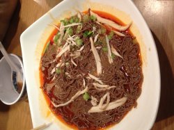 选在了辛香汇店庆的日子去的,人是超级的多啊,到了之后发现人基本已经排到电梯口了,取了号又等了两个多小时,哎真不是去吃饭去受罪的,到号了赶紧吃吧,点了平时没吃过的,鸡丝荞麦面烤羊排蔬菜等,说下荞麦面,太难吃了,一股糠的味道,像在吃猪食,失败,烤羊排倒是不错,铁板烤的蛮香的,份量也还行,其它就是推荐菜了,以后还是吃推荐菜保守点好查看更多
