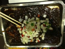 嗯,我特别怕刺多的鱼,但是这两种鱼的刺都很少哦,吃的时候比较放心的~鱼还是比较新鲜,吃到嘴里觉得鱼肉是很实的。味道上一直都米有尝试收到好评的黑胡椒,有点小遗憾..香辣豆豉也是不错的,开始的时候味道很淡,不过到后面时味道就很浓了,这点和鱼酷有点像的~里面的配菜也是开始的时候就加进去的,油豆皮比较好吃的~上来后是炭火加热,要勤翻一下,有点地方很容易糊哦~去了三次,全都米有川北凉粉,我怀疑根本就米有这道菜....比较喜欢口水鸡,里面米有配菜,觉得很实惠哦~还有团购里面的蓝莓山药,很解腻的,推荐哦~总体来看还是不错的,口味比较相似于鱼酷,不过增加了些川菜,显得菜谱更加丰富一些~貌似是全国连锁,据说在北京的口碑不错的,希望店家继续改良,在沈阳也能常驻下去~…查看更多