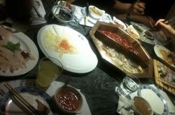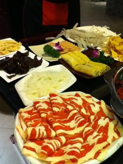 这家店是朋友多次推荐的!到店后还知道是某个明星开的,虽然不认识,哈哈!他们家的火锅材质很新鲜,锅底料也很足,感觉人工合成加的很少,因为吃完一点没有觉得嘴巴干或者有哪里是感觉不舒服的。食材的品种也非常多,每个菜的摆盘也非常有特色,黄油锅辣度非常正宗,鸳鸯锅还在不辣的锅里有一个猪蹄!他家的劲爆牛肉丸的特色,太坑爹了,不能吃辣的人,千万别点这个!第一次被辣到掉眼泪哦!丸子里面里面全是辣椒,咬了一口就吐出来了,太麻了!鸭肠倒是还不错哦!口感很脆很Q弹,搭配着辣锅吃!感觉挺好!虾滑也不错很新鲜,刷完口感很好,一点也不会太老,而且把锅里的味道都积聚进去了,味道很好!雪花牛肉一上桌,哇塞,这么大!这个“肉片”吃起来爽的!虽然88一份,量很大,绝对值!食肉性的吃货们千万不要错过它咯~烤猪脑也挺香的,调料是自助的,大豆奶又便宜又好喝!最后送的西瓜很甜,哈哈我要了2盆~~店里用的是IPAD点菜,服务员也很热情,服务到位~很赞!!查看更多