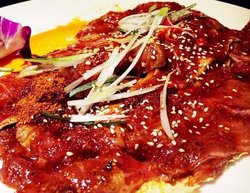 麻辣鲶鱼上洒了香辣粉、白芝麻。看鱼肉的颜色,已经是腌过了的,切的片很大。往锅里一滚,鱼肉吃起来还挺嫩的。虽然已经加工成切片,但还是挺肥美的口感。嚼的时候,鱼肉的咸鲜味透了出来,辣味恰倒好处,反而是麻的味道重一些,麻麻的显得特别香。平时吃鲶鱼,比较多的是作成水煮鱼或烤鱼的,这么涮着吃还是新尝试的。没什么腥味,蛮好吃的,所以印象比深。查看更多