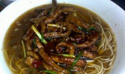 上海的温度直线上升,冒着30度的高温拨草这家店,离地铁还是较近的,几张木桌几张塑料椅子就放在沿街的人行道上,十一点多已经坐无虚席了,炸猪排(15元):有自己独特味道的猪排,胡椒粉给猪排带来了辛辣味,不用酱油的辅助,原汁原味更好吃,不过那切工就太粗操了,随意两刀,肉块有大有小不均匀,看着就不舒服;辣肉丝拌面(28元):因天气热实在hold不住汤面,所以选择店家推荐的拌面,面条过硬,吃完上述猪排,觉得肉丝面味道与它类似,实在体会不出辣味,红虾酱倒有提味感~~…查看更多