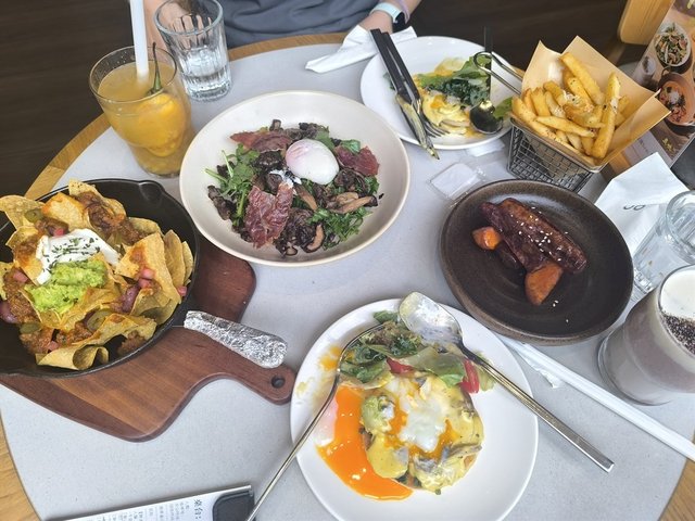 今日下雨最好的活動就是行下商場shopping, 食下野, hae一hae🤗 今日選擇食西餐, 先來一人一杯特式飲品.樹番茄芒果茶 ~ 飲品貌相已經十分吸引, 又似梨又似芒果其實是蕃茄的飲品.红豆燕麥普洱 ~ 燕麥充滿軟綿綿口感,少少的红豆香味,已蓋過普洱的茶味.反而有些像奶茶主食2人餐:前菜: 牛油果酸奶酪玉米片 ~ 其實有些像墨西哥脆片, 牛油果醬及鮮奶再配上肉醬,酸酸辣辣夠開胃👍🏻份量也很多.牛肋肉火腿菌菇飯 (配溫泉蛋)~ 有驚喜的意大利米飯,充滿菌香及牛肉油香味, 牛肋肉粒很嫩又感juice,食完一口想再食一口🤭63C温泉蛋黑松露磨菇 ~ 面層的温泉蛋中間加上一片片的菇菌, 黑松露味比較淡😅反而更顯温泉蛋液的雞蛋味,底層的麵包都香脆. 不過,如果麵包熱一點會更好食.後加小食 (細份):蜂蜜雙色地瓜~少少甜烤得剛剛好風味薯條~超級香脆😋薯條面層灑上少許芝士增加咸香味道總結:餐廳位置非常方便,近地鐵站. 餐廳座位也有很多區域.分室內&室外區.因為今天下雨,星期六下午1點左右也不算太多人. 邊食邊聊也很舒服. 服務員哥哥也很好.…查看更多