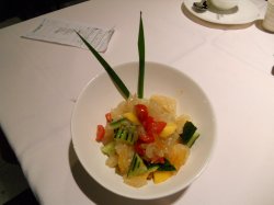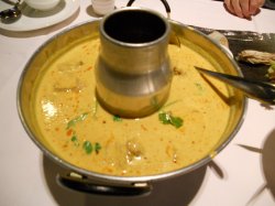 迈泰之行 TIKY琦等級42010-11-05 關注 感觉这家店的装修有点玩混搭,天花板居然是管道式的后现代风格,而且店内布置的比较简单,没有很浓郁的东南亚风情,不过有一面墙是鱼缸,打上了灯光,看着里面游来游去的鱼,感觉心情很舒畅。芒果大虾沙拉,大虾对半切开铺在水果上面,然后上面淋了色拉酱,大虾还是蛮新鲜的,不过下面的水果一点不甜,尤其是哈密瓜,芒果是分开放得,分量大概差不多一小碗,感觉性价比不高。黑咖喱石锅牛仔骨,这个味道很香,咖喱和黑胡椒的结合,牛仔骨的量也不算少,而且很嫩。石锅珍菌鳕鱼,不是银鳕鱼,肉质厚厚的,里面菌菇很多,味道一般般。黄咖喱杂菜,浓浓的黄咖喱和浓浓的椰香拌着各式蔬菜,还是很好吃的,尤其喜欢里面的南瓜,很酥烂入味,浓浓的咖喱中透出南瓜丝丝的甜味,赞。咖喱百合炒螺肉,这道算特价菜,不过价格居然还要69元,味道尚可,螺肉口感不错,很弹牙,不过百合配上咖喱的味道感觉怪怪的。榴莲汁,这个估计不是人人能接受的,味道很浓郁,蛮好喝的。甜品点了一份皇室布丁,名字叫布丁,其实就是蛋糕,层层都夹了奶油,感觉有点腻。马来喳喳,奶味很浓郁,量也蛮足的,里面都是豆类的食材。它家有一点不好,就是居然吃甜品没有小勺子。在店门口看到有维洛卡的打折和积分活动,于是结账时询问了一下,确实是有的,感觉还是蛮不错的。…查看更多以上食評乃用戶個人意見 , 並不代表OpenRice之觀點。讚好分享迈泰之行 迈泰 https://s.openrice.com/KtbT100i1S000檢舉 張貼 評分3味道4環境4服務4衛生3抵食用餐日期2010-10-06人均消費¥146 (晚餐)
