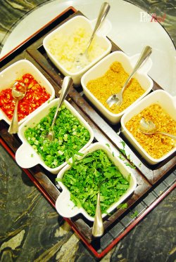 坐地铁到水城路站 正在纠结该往哪个方向走的时候 就听到身后有人叫我~一回头 啊哈 依依嘛~ 真心巧呢 有依依带路就不用东摸西摸了~餐具很多呢 还有公筷 77这种粗线条的老是吃法吃法忘记了......炸豆皮服务员说这个不涮 蘸他们家特调的酱汁别有一番风味的酱是酸甜味的 但是豆皮一点味道都木有 还是泡软了蘸调料更有味道呢~清汤锅77和依依要的都是清汤锅 都是喜欢原汁原味的孩子呢小锅里面料不少噢 玉米、冬瓜、菌菇 清淡的鲜味~雪花牛肉纹路真好看呢 肉质也很嫩的哟~魔芋丝有饱腹感又低热量 最适合女生了!白鳝片本来不知道什么的 问了下服务员 原来就是鳗鱼啊可是很老哎 第一片以为自己涮过头了第二片很注意的一变色就撩起来 可还是老而且肉肉不多呢 77不喜欢吃鳗鱼皮~芝士虾丸一份有六个 鱼籽入锅以后是一颗都找不到了呢 好可惜噢丸子很有弹性哒 就是里面的芝士不是可以拉丝的 奶香味倒还蛮浓郁额话梅花雕虾这个超级赞的!极力推荐呢!!!话梅浸在花雕里 虾身的壳被去掉了充分吸收了酸甜味 一级棒!服务员的态度也很好噢 会主动来帮你把菜下锅呢餐厅的布局隐私性也很好 间距大 还有间隔的 很愉快的一餐~查看更多