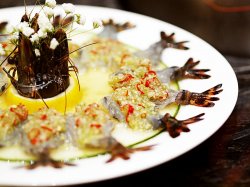 最早知道的是海逸海鲜~那是一家专做海鲜的饭店~食材供应等都是一条产业链上的;由此保证了海鲜的品质。最近在微博上发现了这家新开的一家火锅店;主打海鲜~相信海逸也相信了他们家的品质,自然要尝试下。比较喜欢的是如下几道菜:泰式海虾刺身:摆盘很讨巧~当冷菜吃~不是涮物~酸酸剌剌的口感很东南亚樱花和牛刺身:如山似的唯美摆盘~山顶又如花儿般绽放开来~生熟皆可~红酒顶级雪花肥牛:雪花牛肉似乎总能在各店内见到~这次店家来了个小创新~将红酒与雪花牛肉巧妙的衔接起来~摆盘都漂亮了不少在水汤里翻腾两下就可以开动了~淡淡的红酒味让美食更添回味~来了这里自然不能不提海鲜~东星斑的美味绝不是可以靠什么语句能表达的出来的~将鱼片在汤底里迂回两下~待鱼肉微微卷起就可以入口尝试~我更喜欢不沾上其他酱料的滋味,你呢?查看更多
