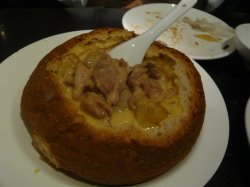 本来在网上预定居然被拒绝了,有点不爽,但到了店家,看到等位的景象便明白了,难怪。不过菜品味道好,环境美就给个好评啦。咖喱鸡有惊喜,装在粗粮面包里,面包吸满了咖喱鸡汁,吃一口跟满足;鱼头汤的香味十足,可以与千岛湖和天目湖的鱼头媲美,真心不错;店里装修很高雅,灯光柔和,带着几分浪漫的情调,插花和墙上挂着的巨大木质算盘很是吸引眼球;美中不足是太吵杂了,自然是生意太好的缘故。查看更多